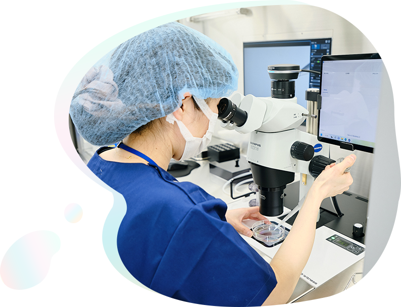 培養ラボでは室内の光、清浄度、温度、湿度を厳しく管理します。数多くの症例に基づいた知識と経験を持つ胚培養士チームが患者様からお預かりした大切な卵子と精子を24時間365日体制で管理を実現します。