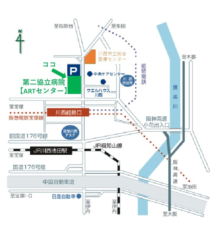- 阪急川西能勢口下車北へ徒歩7分(阪急梅田駅より約23分、大阪国際空港(伊丹空港)より約20分)