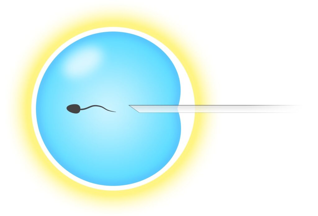 運動良好精子を人為的に一個だけ選び、細いガラス針管を使って採卵した卵子に直接注入する方法です。一般的には体外受精を行っても妊娠に至らなかった場合や、精液中の精子濃度や運動率が低く受精しないと判断された場合に行われます。