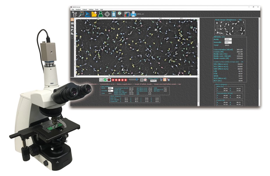 精液所見をコンピュータで客観的に検査する装置です。特に運動の質は観察者によって評価が分かれやすいため、機械に客観的に判断させることでより正確な精子の分析が可能になります。また、この装置では直線速度・曲線速度・頭部振幅・頭部振動数などより細かな運動の質が解析できます。