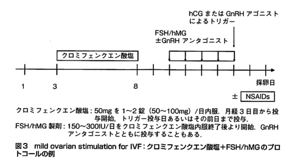 自然周期採卵:mild IVF(クロミフェン+FSH/hMG周期)のプロトコール